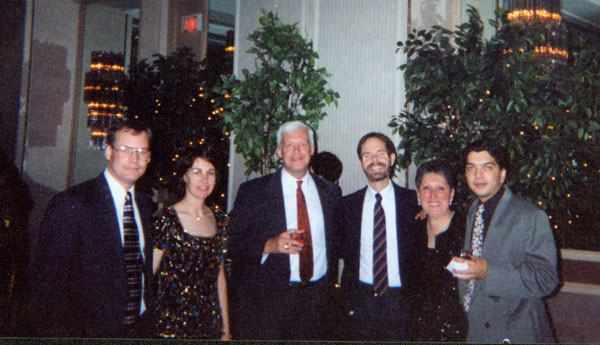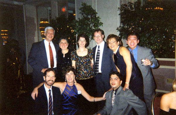 I was with the project about two years, and one December, at the height of the project's activity, Deloitte and Touche held a Christmas party for the folks on the project. We each got copies of any of the pictures the photographer took that included us; this is the first of mine. At this writing, I cannot remember the names of more than a few of the people I worked with. In the picture at left, I do remember Alan (4th from the left in the back row); he was the project manager for Deloitte and Touche and an accounting expert providing input into product functionality. And I remember Madhu (right end of the bottom row), one of the programming supervisors.