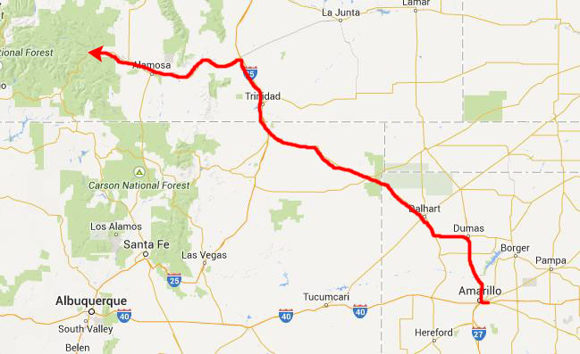From Wichita Falls, we pick up US 287 and take that all the way to Amarillo, where we usually arrive about midnight- spending the night there. While Highway 287 is not Interstate, it is a divided highway most of the time, and you can move along fairly quickly.
