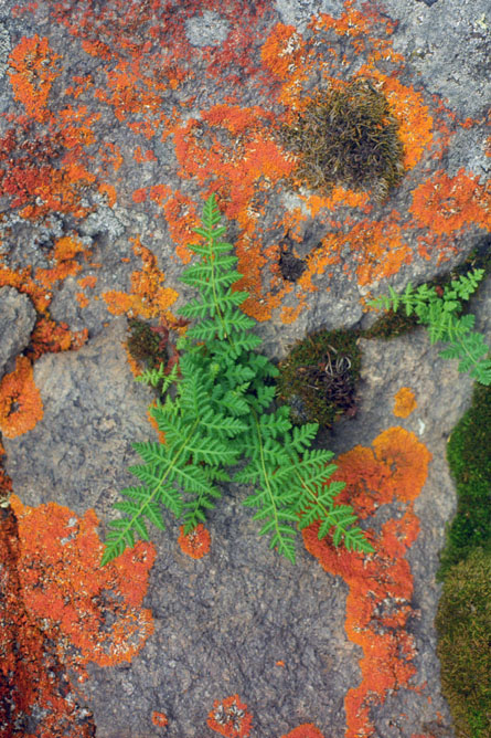 Fred got one other neat picture that I want to include here- a closeup of some ferns and orange lichens on one of the rocks we passed.