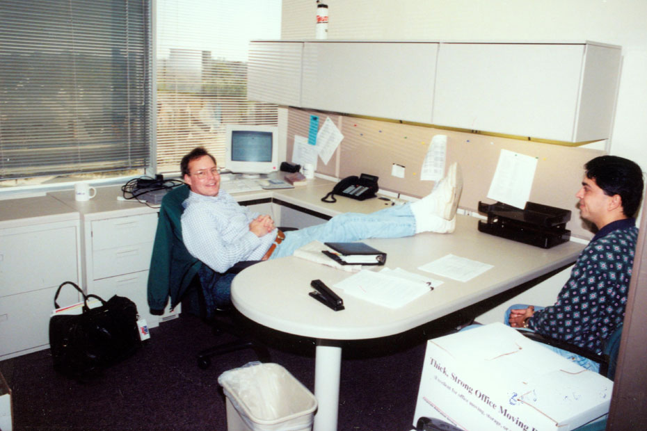 Getting here each day is a lot easier than getting downtown. While downtown is closer, parking is a hassle there. Still, getting here in the morning is only a fifteen-minute ride. When we were downtown, we were just one floor up from the offices of Deloitte and Touche, one of the "Big-8" accounting firms, and so its button-down conservative dress code applied to us as well. Now that we are up here, the Global Advantage project has gone to "business casual" during the week and jeans on Fridays.