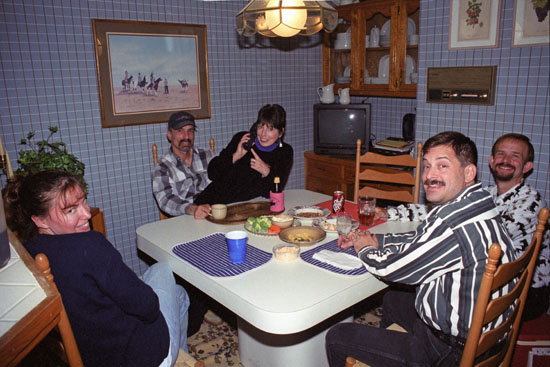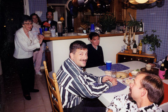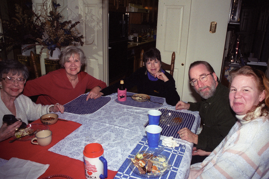 Our good friend, Barbara Reynolds, had also attended, but she had to leave shortly after supper, and thus doesn't appear in this group shot towards the end of the evening. But you can see her here, in a picture taken during supper. She's at the table with my mom, Lynne, Karl and Nancy.