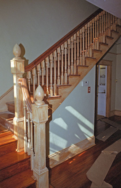 Inside, quite a lot has been accomplished. Right inside the front door, the stairs have been reinforced and refinished, and aside from painting and a runner with brass tie-downs, it is pretty much done. All of the other rooms have had significant work done to them, most particularly the Sun Room. That view looks east from the area just inside its doorway- through the dressing area to the sitting area. You can see that a new spiral stairway has been installed; this will lead up to the rooftop deck, which is not yet done. There is just a sliding cap up there now, and a pretty bare flat area, but you can get up to have a look around. I think the Sun Room will prove to be a favorite.