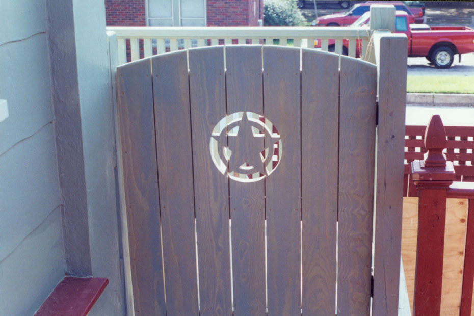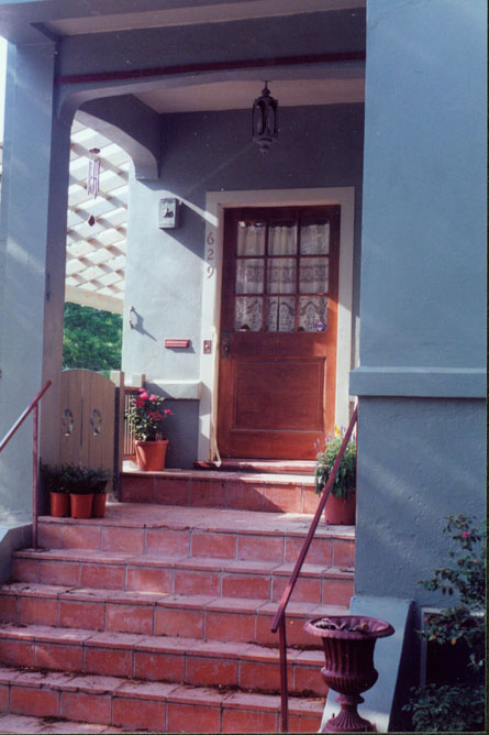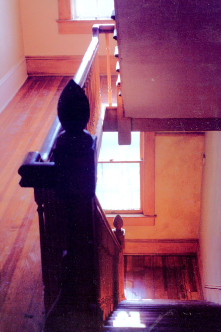 There were a few more pictures that we took in and around Ruckman Haus that I want to include here. One is the main entry, which is reached via walkways from both French Place and Breeden Street. The work on the West Deck is complete, and there is a new gate at the back of the deck- just by the back door off the kitchen. Inside, I took a picture from the top of the stairs looking down into the entry hall.