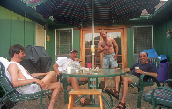 Usually, either Fred or I take lots of pictures at these gatherings, but this time there is only one. In the picture at left you can see Ron, Leroy, Fred and Ron D. sitting around the patio table during the afternoon and before the delicious dinner that Jay prepared. If memory serves, there were a few other folks that were invited and arrived later, but I'd put my camera away.