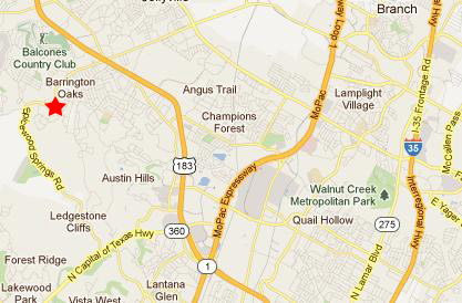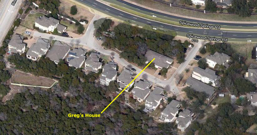 Greg got a nice house in northwest Austin just off Spicewood Springs Road (if you know the city). Here is about where it is located:
