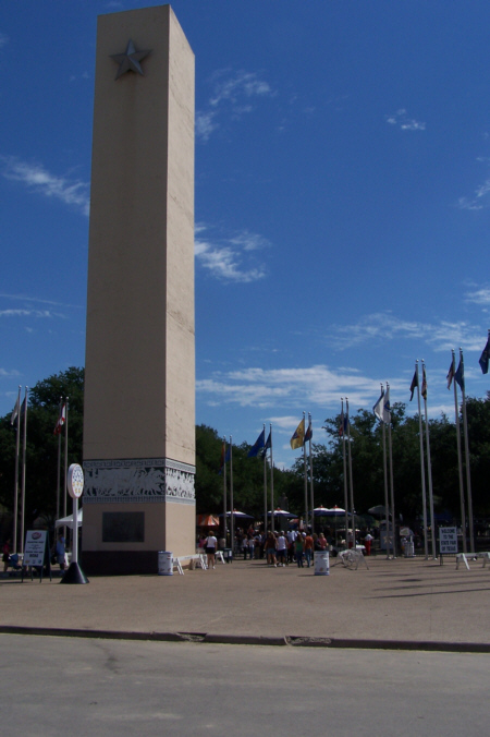 We found a parking lot a few blocks from the Fair, and then walked down the street to the fair entrance. A little ways into the Fair, Fred found a good vantage point to take a picture of downtown Dallas and you can see just how close the Fair is to downtown. Incidentally, the picture you just saw had quite a few power lines and stuff like that in it, but I erased them with Photoshop. I've always thought that Dallas would be improved a thousand percent if only the power lines had been buried way back when. I guess people are used to seeing them, until you visit a place like Scottsdale, AZ or the newest sections of some other cities, and see how nice things can look without them. Unfortunately, I suppose it's way too late now.