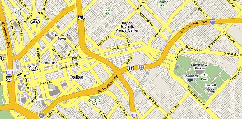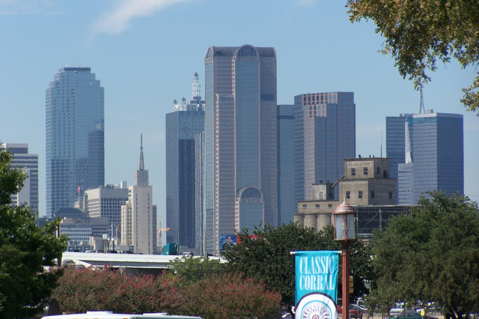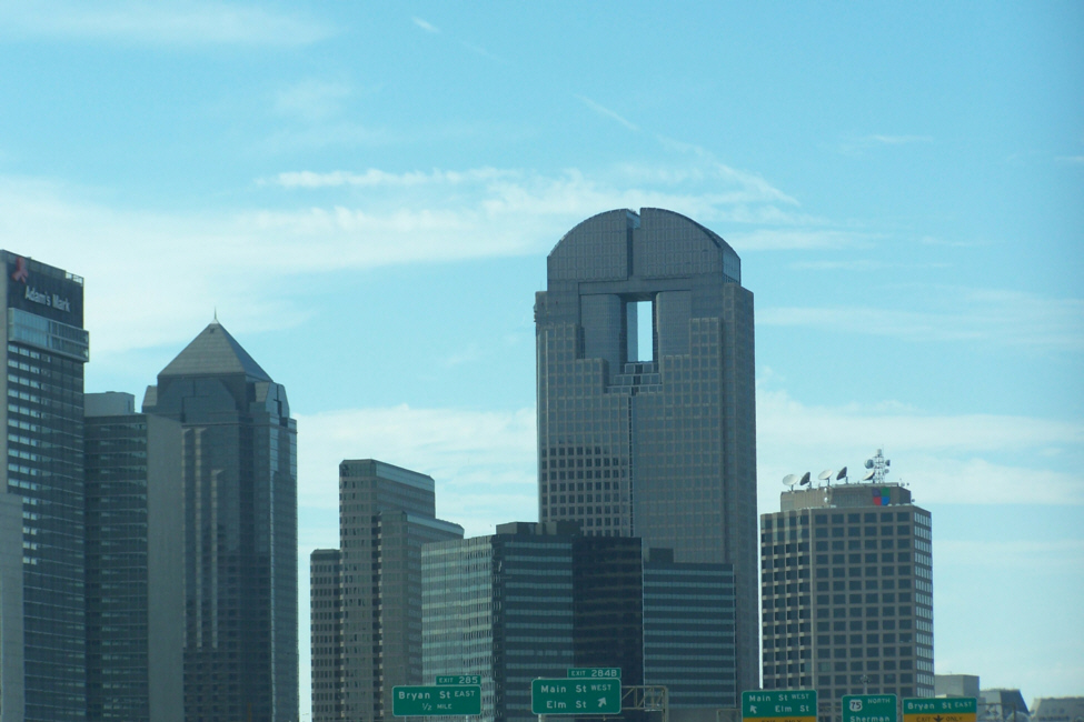 So, architecture is one of the most interesting aspects of the State Fair. But as you saw at the beginning of this section of pictures, architecture in Dallas neither starts with nor ends with the State Fair. The city itself is a veritable cornucopia of architectural points of interest. Just as we left the Fair, Fred was able to capture another view of downtown Dallas showing some of them.