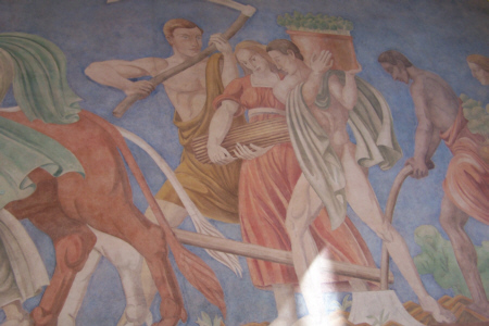 But it's not just the buildings themselves, it's the way they are adorned. In this vein, the best examples we found were on the agricultural buildings, where the emphasis is on the natural world and its bounty, and the images are intended to convey that kind of message. Fred took a number of excellent pictures of this adornment, and we've chosen the best six of them to display below. They will give you a good idea of what most of the buildings at the Fair actually look like.