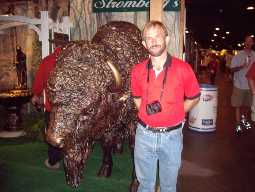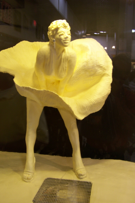 There were a couple of standout vendors, though. I bought some excellent fudge from one vendor, and Fred bought a neck pillow with some kind of space-age stuffing from another. He also found a Texas flag shirt to give me for Christmas. One vendor had a large carved buffalo as part of its display. In another hall, we ran across, if you can believe it, a life-size sculpture of Marilyn Monroe sculpted entirely from butter!