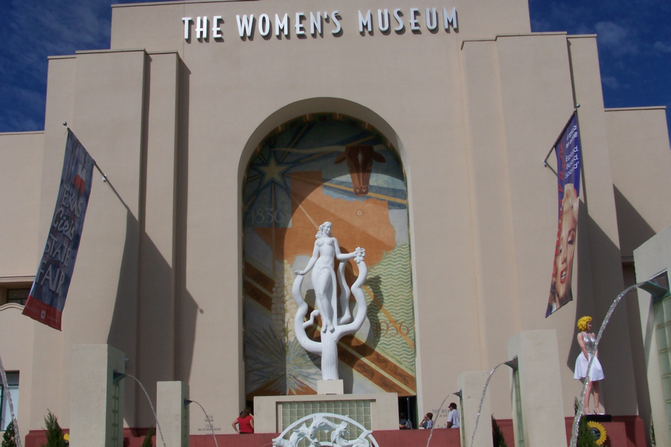 Even if you took away all the food, the games, the rides the exhibitions and the people, the State Fair of Texas would still be worth the price of admission. The architecture and decoration of the buildings forms an exhibit of its own. Much of the Fair was done in the Art Deco style, since many of the buildings were built back in the 20s and 30s. And the ones that have been build more recently have been built in that same style. As an example, here is the relatively new Texas Women's Museum that just opened last year.