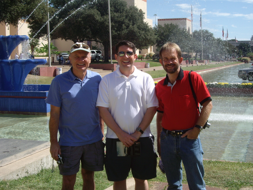 Just inside the Fair entrance there is a reflecting pool, flanked on either side by some of the buildings where the auto show is housed. This was a good place for me to take a picture of Greg, Tim and Fred.
