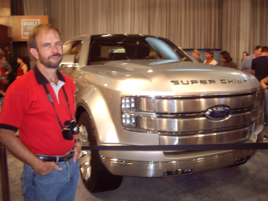 One of the main displays at the Texas State Fair has always been the new cars and concept vehicles. There are two entire halls devoted to autos, and there were more people in them than anywhere else. You can see everything from the new gigantic SUVs, through the new mini-sedans, through the concept cars and on through the trucks (always dear to the hearts of Texans. I actually saw a small SUV that I might put on my list for my next vehicle- the Chrysler Caliber. But, if I were in the market for a kick-ass truck, had an oversize garage, didn't give a whit for the price of gasoline and probably also had "endowment issues," I would definitely consider Chevrolet's concept truck- the Super Chief. If the name sounds familiar, it probably is, and one look at the truck will make the connection. It looks for all the world like the front of the railroad train nicknamed "The Super Chief." And the damn truck is just about as big!