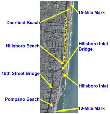 From there, we continue north along A1A (all or most of this with a bike lane) to Pompano, and then over to the shore again to arrive at Pompano Beach. Finally, there is another few miles up A1A to the border of Pompano Beach and Hillsboro- and that's where the Hillsboro Inlet and its bridge are. The distance from the condo is just over 12 miles, so it is a 25-mile round trip.