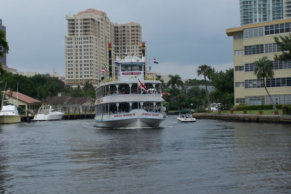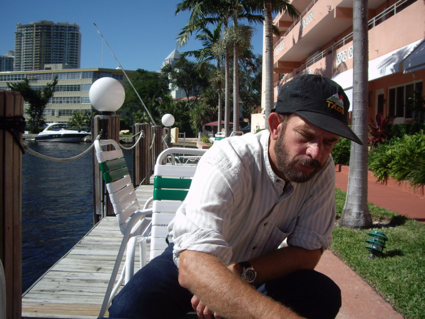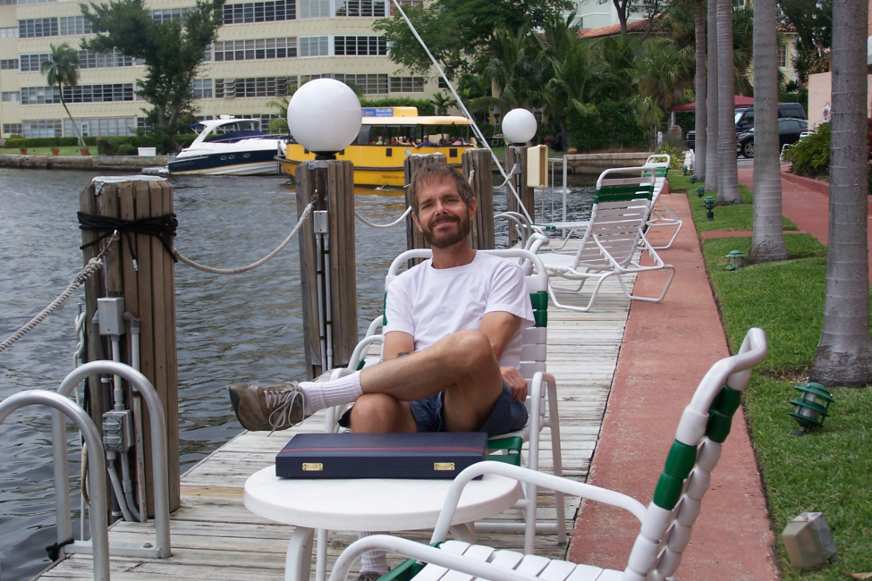 Our week was all too short, and today's the day we have to head back. But it's another beautiful day in paradise, so we tried to do as much as we could. First up was another backgammon game at the Riverview Gardens dock. It's days like this that show off South Florida the best. Here's a view of the Jungle Queen II coming down the river past where we are playing. Speaking of playing backgammon, here is Fred pondering his next move (in one of a succession of games that he won). And here is another, small craft heading upriver.
