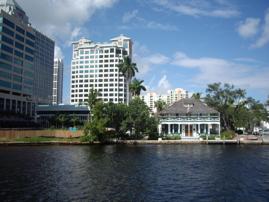 We took quite a few pictures from this vantage point, a place, oddly enough, I had never thought to ride my bike to. First, I took a picture looking directly across the New River to the Stranahan House. Frank Stranahan, a young Ohioan, settled in the frontier town that is now known as Fort Lauderdale, at a time when only a small military fort and a trading post were sited on the lands belonging to the Seminole. He built the house in 1913 for his bride, the only teacher in the area- Ivy Cromartie. The house has since served as a trading post, post office, town hall and bank. It has been restored completely and is now a museum. In all my trips to Fort Lauderdale, I have yet to tour it.