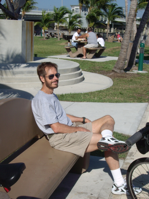 Here is another view of Fred and the Hillsboro Lighthouse, and here I am relaxing on a park bench. Taken on the north side of the park, right by Hillsboro Inlet itself, here is a picture of the Hillsboro Inlet Bridge, which spans the border between the towns of Pompano Beach and Hillsboro.