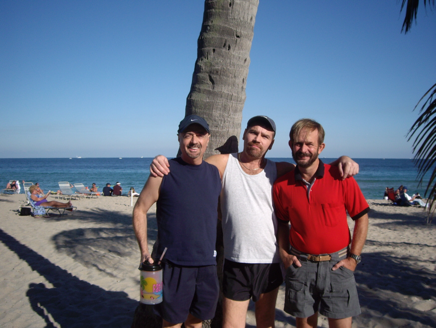 When we finished, we walked across the street and along the beach for a ways, and I was able to take this picture of Ron, Leroy, and Fred.