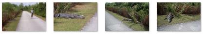 It became pretty apparent pretty quickly that our trip here to the Everglades to enjoy biking and see wildlife was going to be wildly successful on both counts. The biking was certainly fun, as it always is, but the variety and frequency of wildlife sightings was just incredible. We hadn't gone even a half mile from the Visitor Center before we began to see a wide variety of birds and quite a few alligators- all right by the bike trail- with the alligators so close that you could touch them. Here are some thumbnails for the first pictures we took of the wildlife; click on them to view the full-size images: