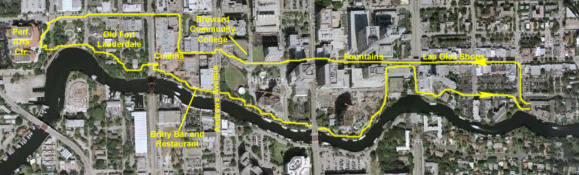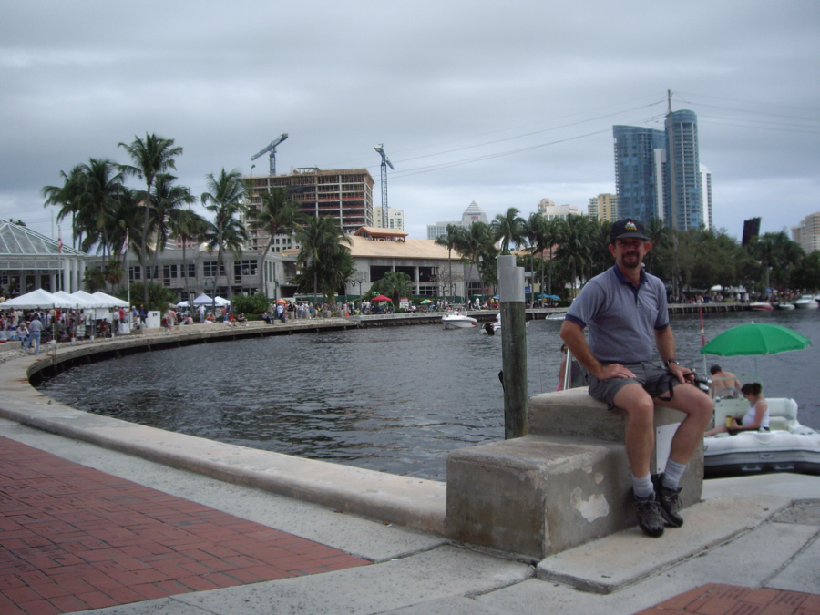 Just before we left to head back, I got Fred to sit beside the river, with the Arts Center promenade and downtown Fort Lauderdale in the background, and you can see that picture