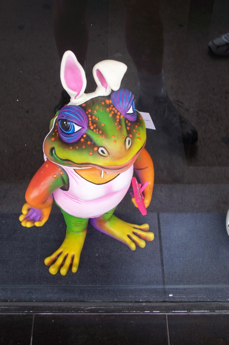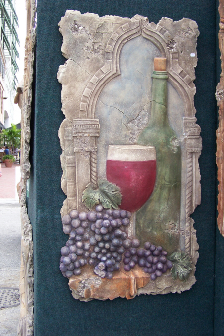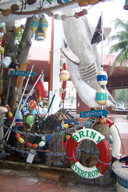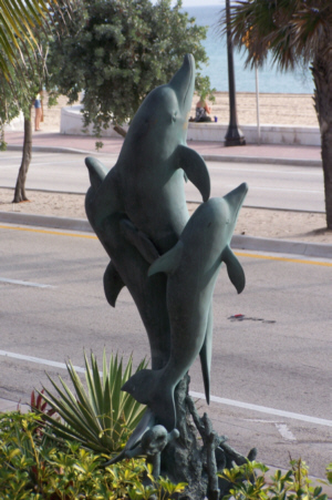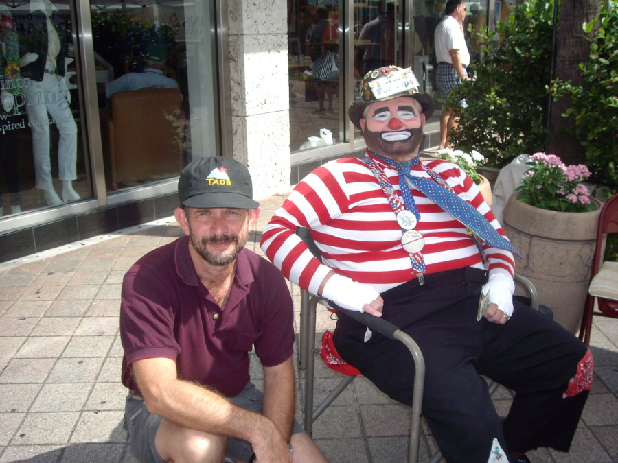 After we got back from breakfast, we took our cameras and headed over to Las Olas. There were quite a few vendors with some interesting things, and each of us made a purchase or two. I got some new artwork for the condo and also paid for some ceramic tiles on which the artist puts whatever picture(s) you send him. Then you can either mount them on a wall, display them in a holder or even use them for trivets. Fred found a neat buffalo picture/artifact (a picture with a relic below it, both mounted in a shadowbox frame). That I purchased and put away for a future gift. But he found some other stuff, too.