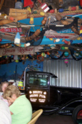 One of the reasons why we rode our bikes over here rather than walked is that it is a lot quicker and easier to get over to Shirttail Charlie's on the bikes. So we left the antique cars and crossed the Andrews Street Bridge to