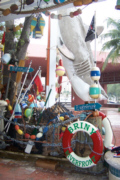 was a pretty nice place, with a balcony patio overlooking the beach- just the kind of place we had been looking for. The menu was pretty varied and the prices were reasonable, so I suspect we will come over here again. We got seated pretty quickly, although the restaurant was pretty busy, and we had a good table with a great view (including the dolphin sculpture seen at the left). You can watch a movie I made here using the player below:
