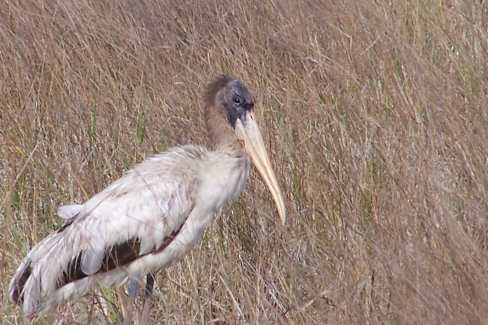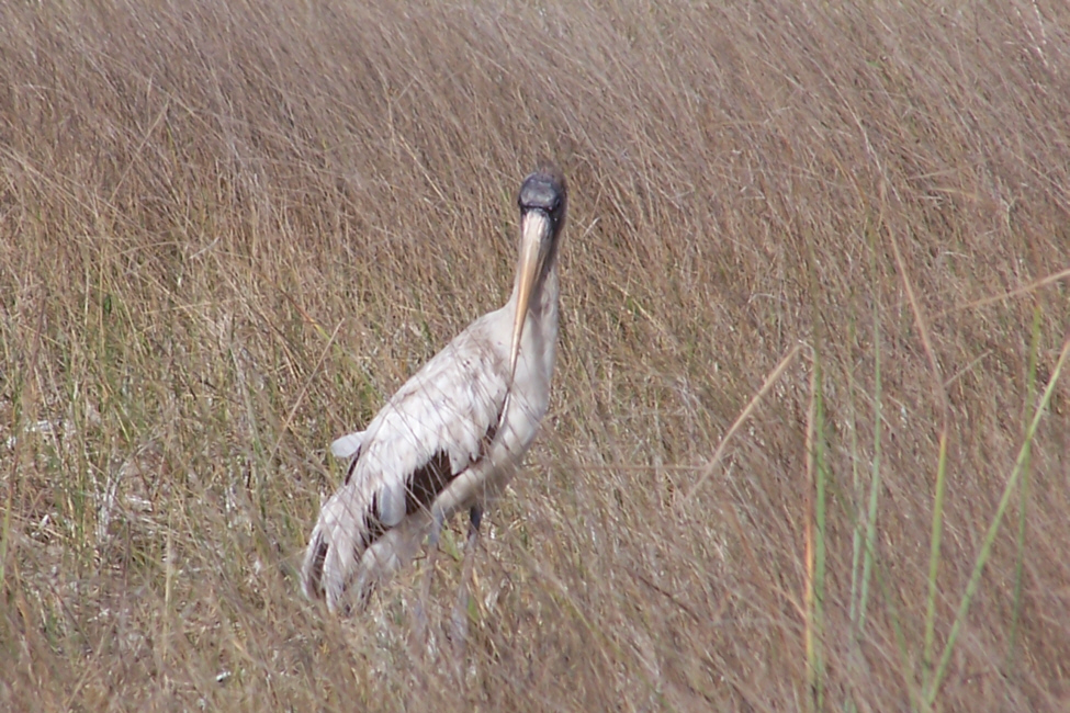 The rarest of all the birds we saw was the Wood Stork. We were actually lucky to see one; a park ranger had stopped on the road and seemed intent on something off in the marshy brush. She was the one who pointed the wood stork out to us.