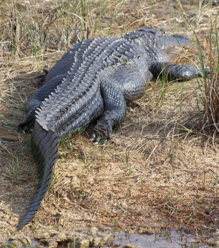 alligator facing away from us