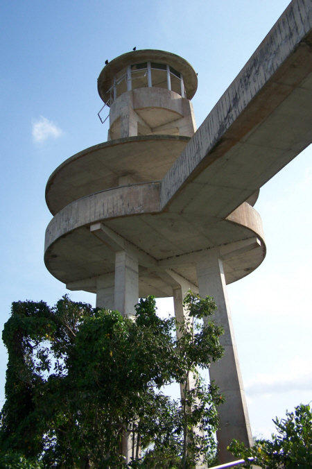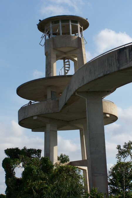 Then there is a sweeping spiral rap that leads up to the main observation platform. I can only imagine that the ramp was designed to allow handicapped access. On the main platform there is another spiral staircase that leads to an upper platform. It would have been fun to climb all the way up to the top, but the spiral staircase had been closed and locked, perhaps because someone had not been careful sometime in the past.