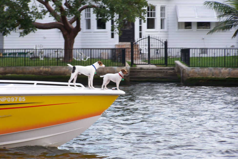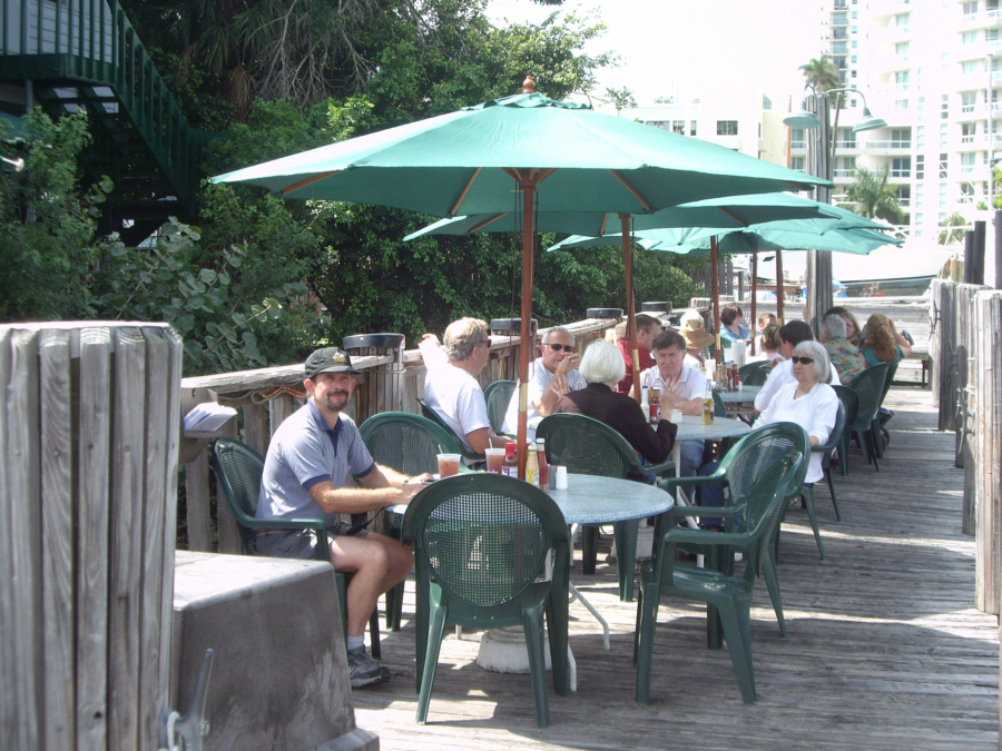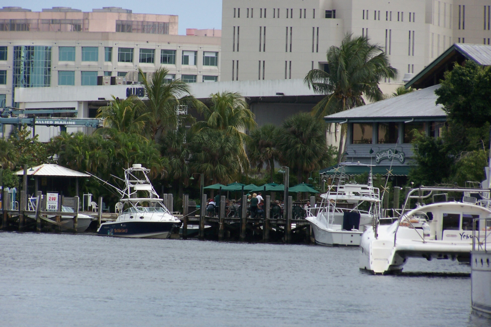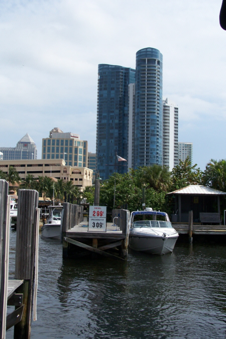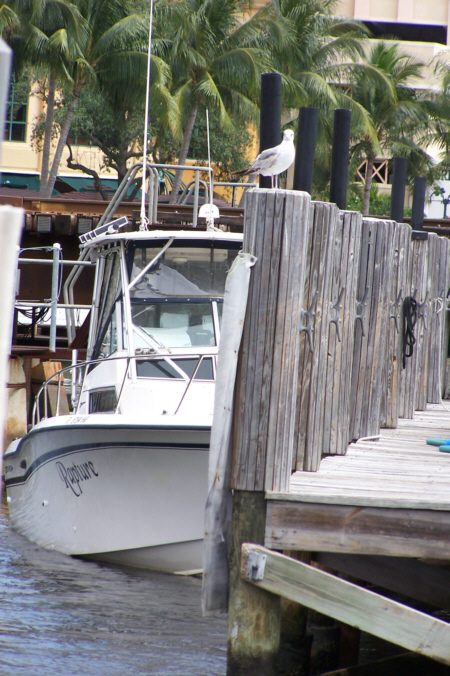 I took two similar but different pictures of Fred at the end of the dock at Shirttail Charlie's with downtown Fort Lauderdale in the background, and you can view those pictures