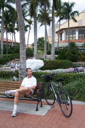 After lunch, we rode the bikes back across the river and then around Old Fort Lauderdale, in front of the Science Museum and to the Performing Arts Center. There, we found some benches where we could sit and enjoy the afternoon and the music. At the Performing Arts Center, as you may have seen before, there is a very nice