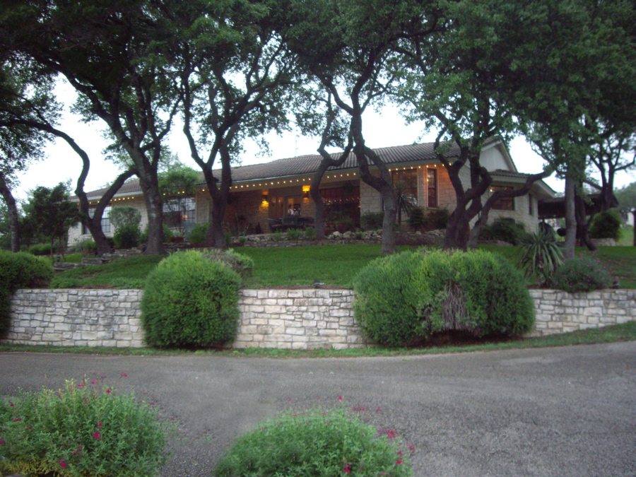 Anyway, Ron said that I must join him Tuesday evening out at Blair House, a B&B north of San Antonio, for their monthly game. Since Guy was busy at the church, and Prudence and Carolyn were occupied as well, Ron and I drove out to Blair House. To get there, you have to take US 281 north for quite a ways, and then turn off and go east around the north side of Canyon Lake- an up-and-coming area with lots of new homes and such. Once past the lake, we turned north on the road to Wimberley. Ron first took me into town to show me around while it was still light. It's a neat, touristy place, with lots of shops and a couple of small B&B operations.