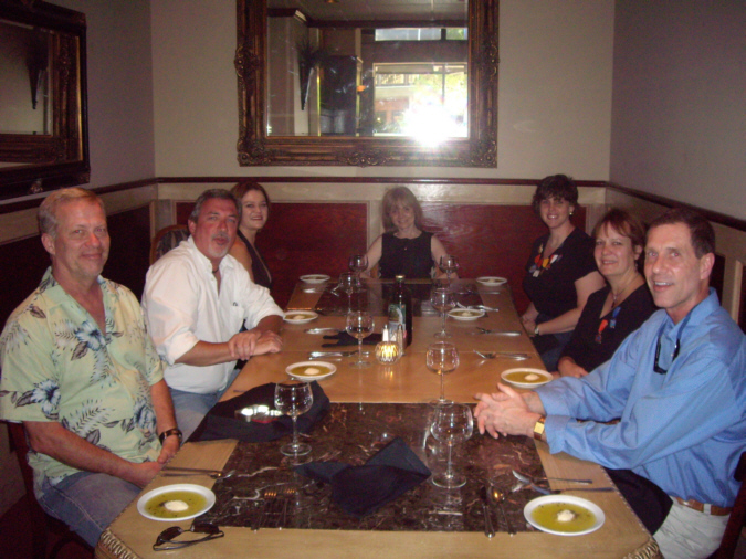Prudence had obtained a group of tickets well ahead of time, and she and Ron wanted to host Guy, myself, Carolyn and Michael and two other friends for the evening. We began with dinner at The Palms, one of their favorite (and very upscale) restaurants downtown, just a couple of blocks from the theater. At right is our dinner group (minus me, of course). Around the table from the left are Michael (a massage therapist and budding signer for the deaf and Carolyn's husband), Ron Ruckman, Sally (a lawyer and friend of Carolyn's), Pat (another friend of Carolyn's), Prudence and Guy.