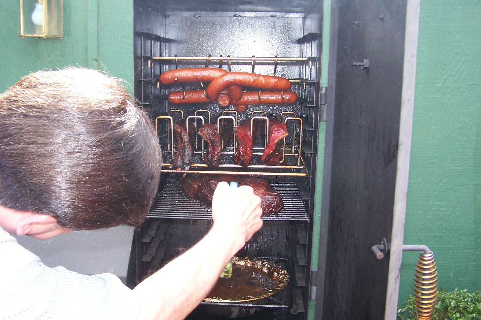 Ron and Jay did their usual great job cooking; Ron did a variety of smoked meats in his new smoker while we sat around yakking on the patio.