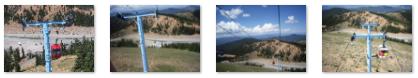 I have to admit that the first part of the tram ride was a little unnerving. I kept having visions of our gondola breaking away from the cable and falling the thirty or forty feet to the hillside below. But that wouldn't have been the worst part- it would then have bounced and rolled hundreds of feet back down the hillside and, undoubtedly, across the parking lot and road, and would have come to rest against one of the hills opposite. But after a little while on the tram, the feeling disappeared, and we were both able to appreciate the ride. Below are thumbnails for four pictures we took as we ascended the tramway; click on them to view the full-size pictures: