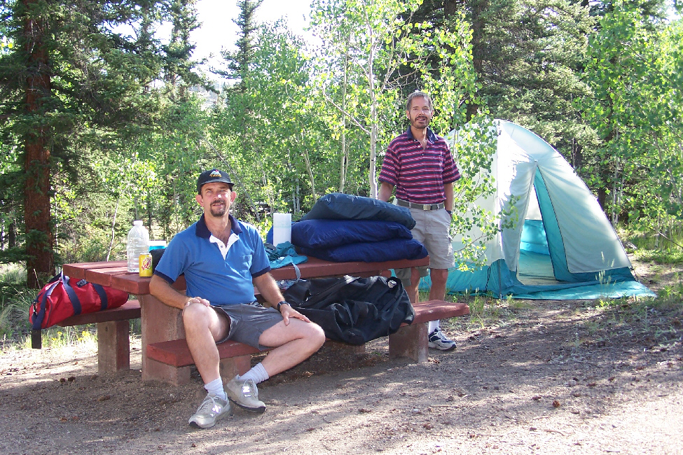 As we drove down Highway 82 towards Aspen, we passed a number of sites that we thought we'd want to explore, including an old ghost town, a hike along the stream that was paralleling us and a large rock outcropping that looked as if it would be interesting to climb. But we wanted to get situated for the night, first, whether that was going to be in a campground (pretty iffy given the weather) or a motel. So we headed on in to Aspen and stopped first at the campground we'd been planning on- The Difficult Campground (so named because of the river flowing right by it). When we got to the campground, it seemed as if the rain was tapering off and so, even though the weather still wasn't very good, we went ahead and set up the tent in a site quite near the Difficult River, so that, later if it was raining again, the tent would be ready. Even though we probably wouldn't be able to cook, at least our tent was secured.
