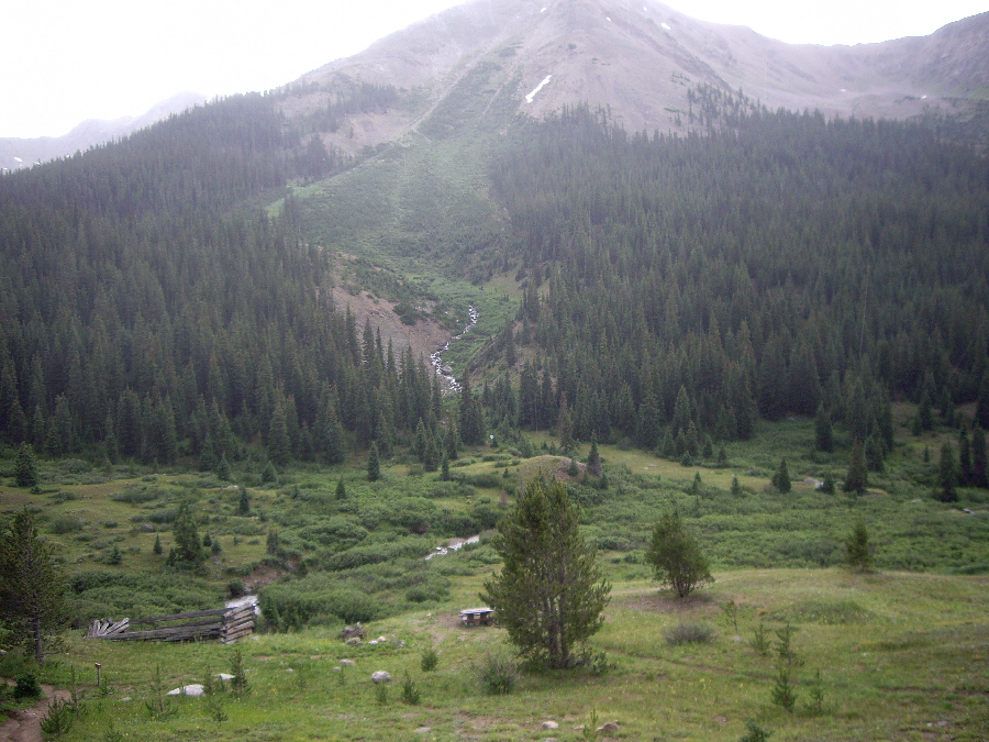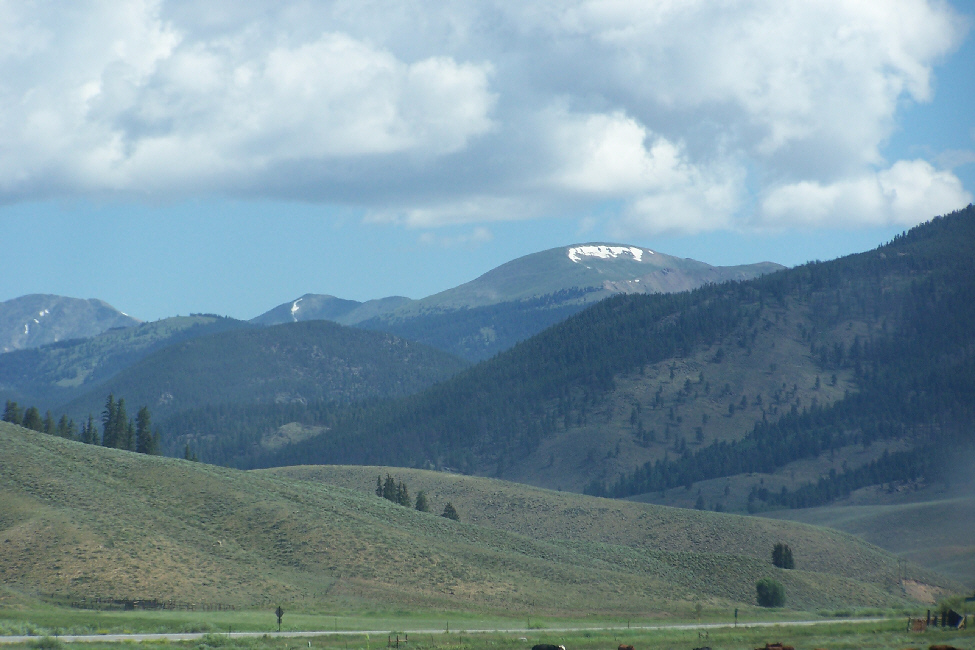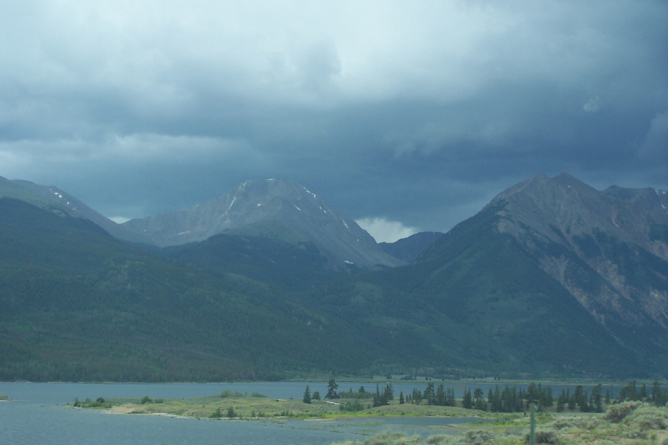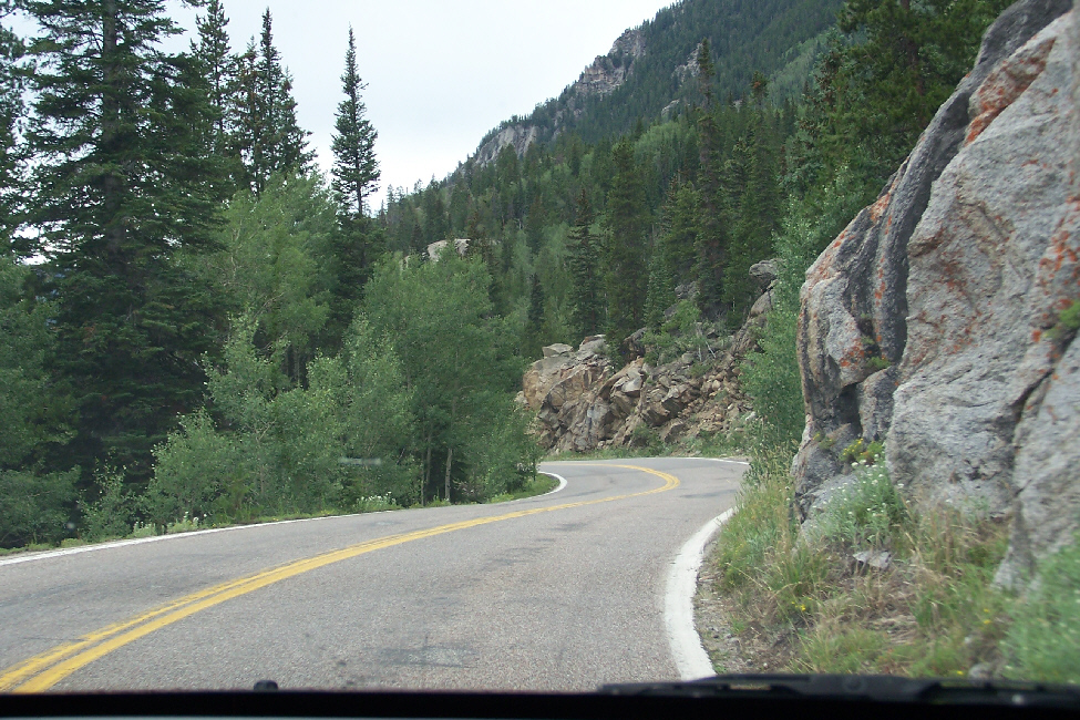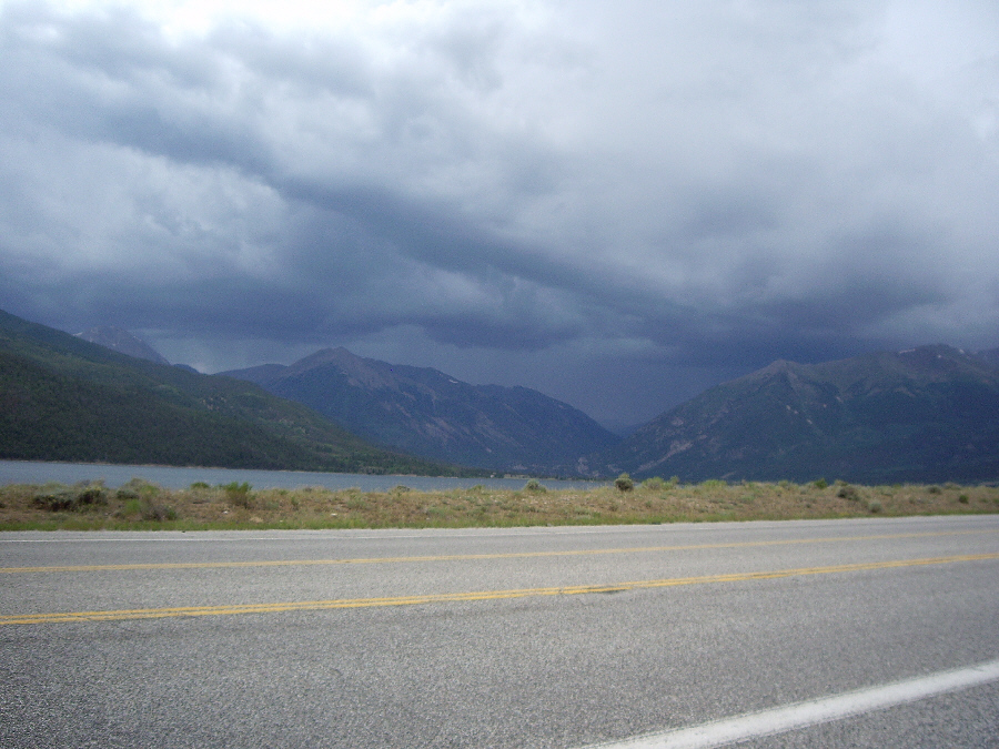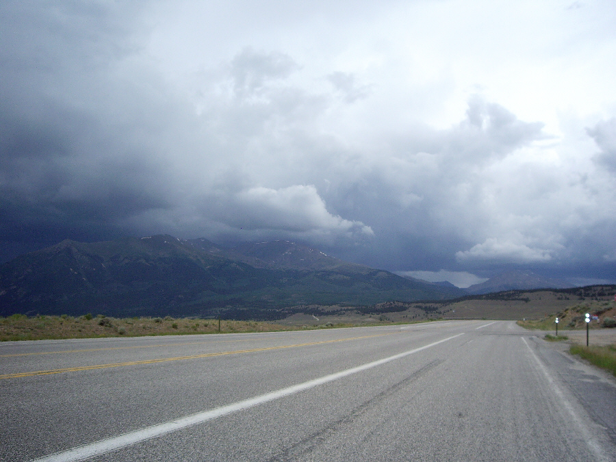 As we drove up US 285, and then US 24, there was a lot of rain, and there were dark clouds hugging the mountains off to the west, which was the direction we would be heading, and also up ahead to the north. Aspen was about two hours away over the mountains, and we just hoped that perhaps the weather would be better once we got there, since we wanted very much to camp out in one of the campgrounds we'd read about ahead of time.