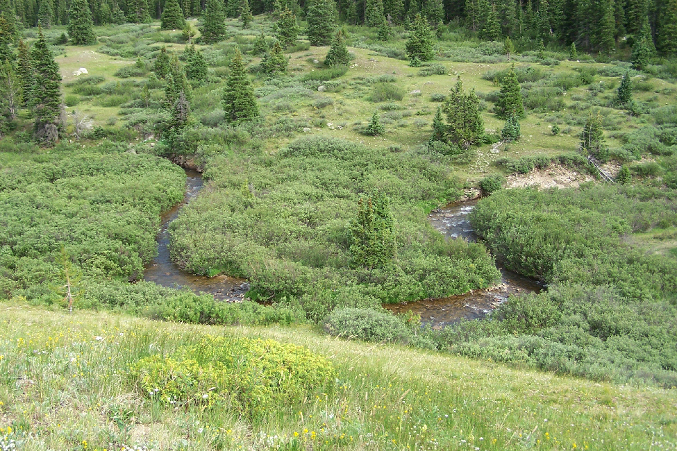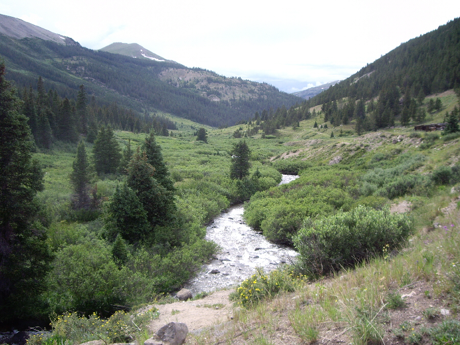 Our last view before we left the Independence Townsite was the same one that townspeople must have enjoyed when they lived here- the view down the valley towards Aspen. Independence was certainly in a picturesque place, but, once the gold ran out, there was really little to support a town, since it was so far up the valley. Perhaps if the residents had been able to hang on for 75 years until skiing became a multi-million dollar activity, things would have turned out differently.
