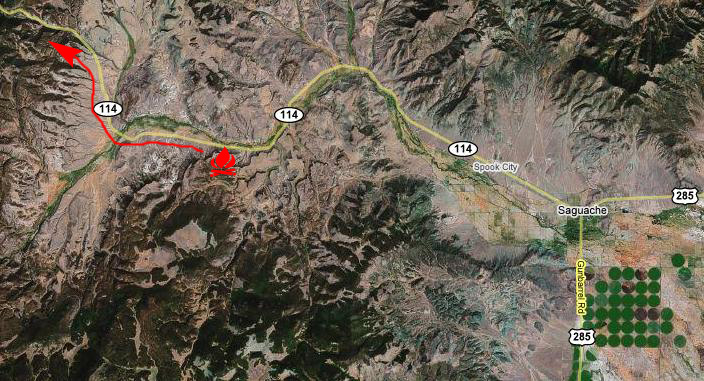 Once through the pass, the land began to level out, and turned for a while into high desert hills. There are some thumbnails for a few pictures of this stretch along Highway 114 below; just click on them to view the full-size pictures:
