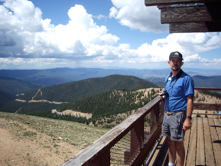 Most of the pictures that we took here at the top of the mountain don't require much description from me here. There are views of the mountains and the ski area to the north, the transmission towers south of the station as well as the mountain valleys to the east. Some of our pictures were taken from the station balcony and some were taken from the mountaintop outside. Below are thumbnails for ten of the best pictures we took here; the first five were taken by Fred and the second five by me. There's some duplication, but I think all of them are good, so click on as many of them as you wish to view the full-size picture: