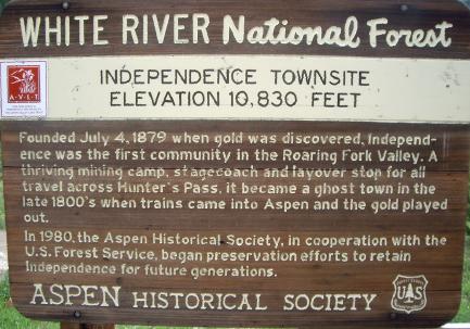 But prosperity ws not to continue. Aspen, established at the same time as Independence, won the honor of county seat for the newly christened Pitkin County in 1881. Miners were lured away from Independence by the abundant work, good pay and milder climate of Aspen. Mining at Independence proved to be short lived. Over $190,000 worth of gold was produced between 1881 and 1882 by the mines of Independence. The next year production had dropped to $2000. By 1888, only 100 citizens remained in the high mountain town, which in its brief history had been called by many names- Independence, Chipeta, Mammouth City, Mount Hope, Farwell and Sparkill.