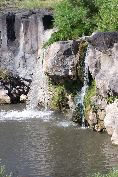 There is a small parking area along the highway, and then you have to walk a hundred feet or so to get to the falls themselves. Once there, you are treated to a small set of spring‑fed falls in what feels like a small oasis in the high meadow. I took a short movie of the falls, and you can watch that movie with the player below: