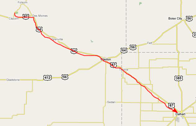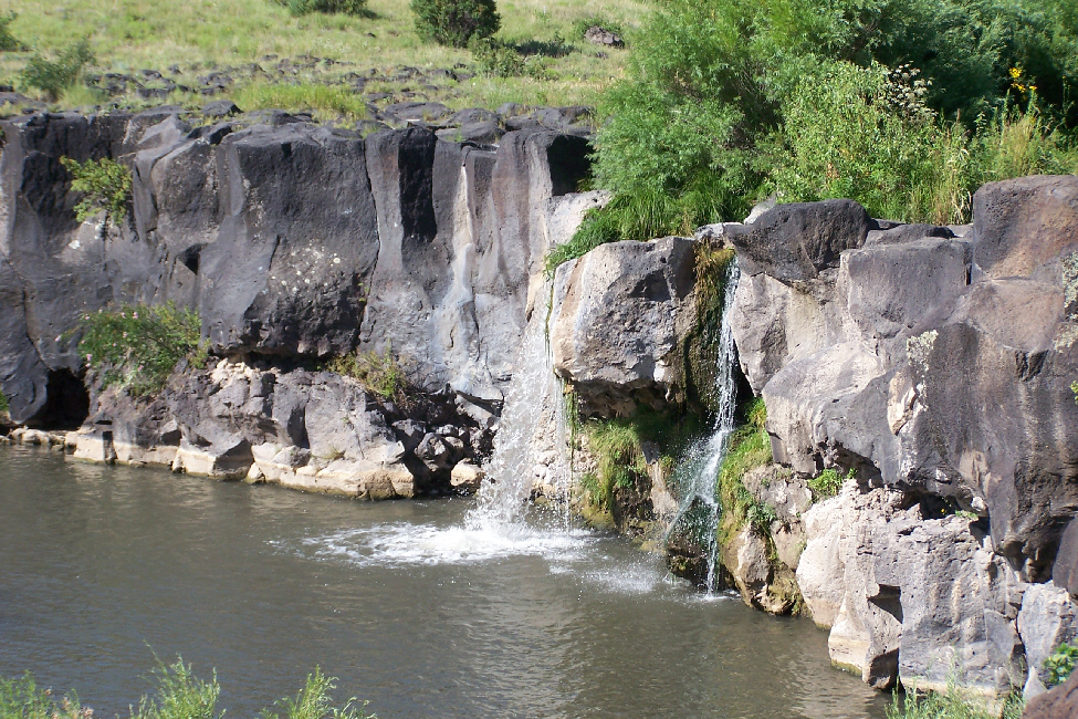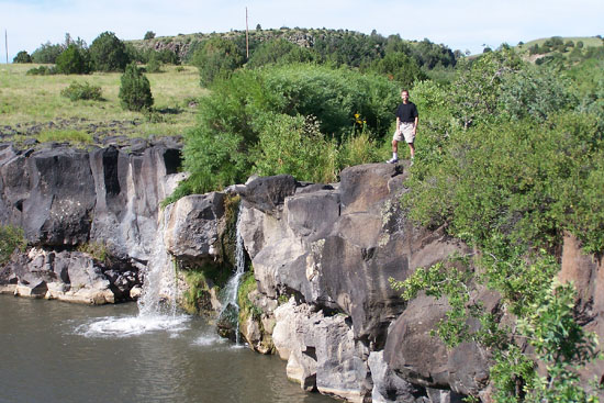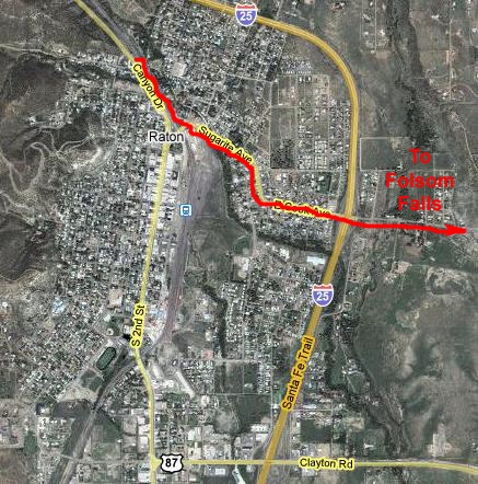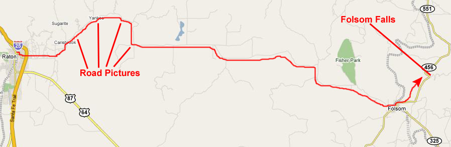 Jan served a breakfast in a room off the little office, and it was set up as if it were a little B&B. Everything was nicely done, and all the guests sat at one big table in the room, to get to know each other, I suppose. Jan was a very nice host. She gave us directions to the road out of Raton that would lead us over to Folsom, New Mexico, and our first stop of the day- Folsom Falls. We had a bite to eat and headed out.