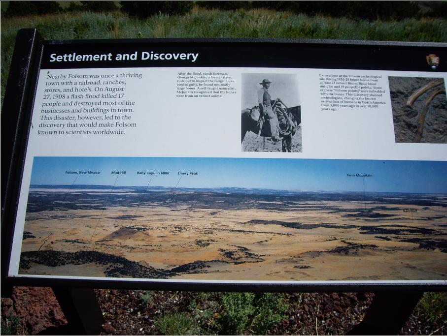 Just ahead of us we came to two informative signs that I will let you read for yourself. The first, Landmarks and Trails, talks about the trails through this part of New Mexico followed by settlers and ranchers. The second, Settlement and Discovery, will give you some information on the history of this area, including the town of Folsom.