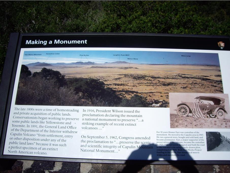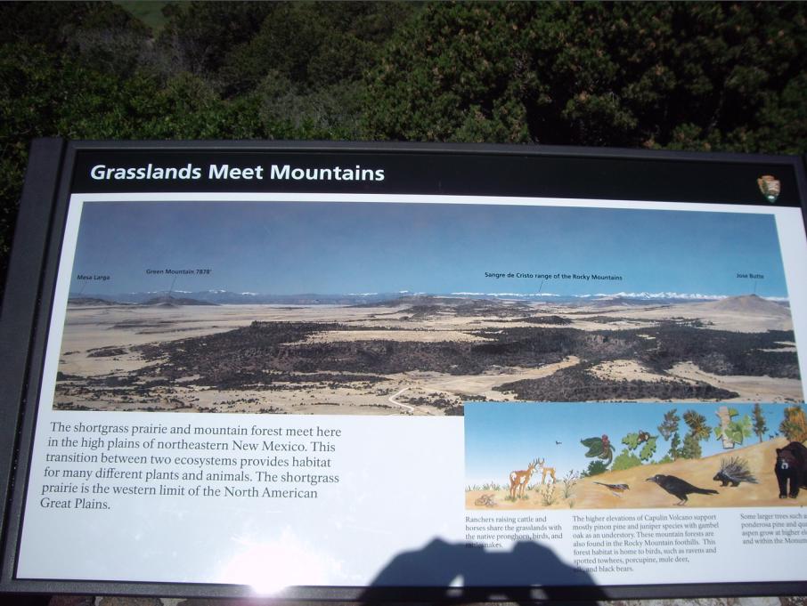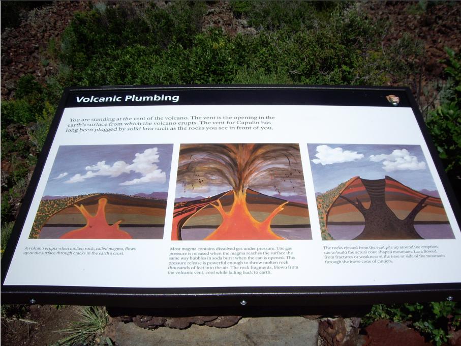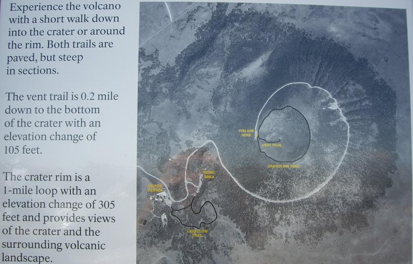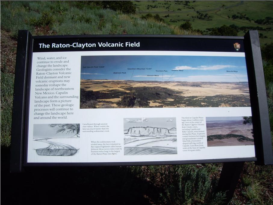 When we got back to the parking area, I noticed one sign that I hadn't seen when we arrived. Had I seen it, I might have used it instead of the aerial view of Capulin that I included towards the top of this section of the album. It provides a really good orientation for both of our hikes, so I am going to include it here: