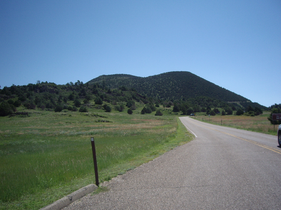 We've come to the end of our visit to Capulin Volcano National Monument, so we got back in the car and headed back down the road circling the mountain, past the Visitor Center, and out to the highway. When we got to the highway, we got one more picture looking back towards Capulin Volcano.