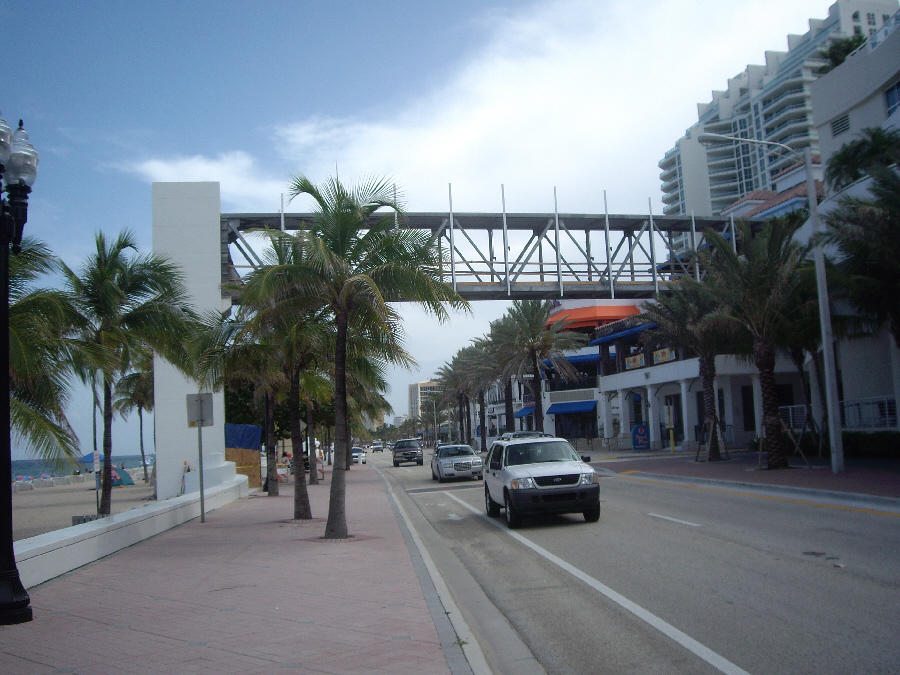 The first is a new pedestrian overpass that has been built to connect a new condo/hotel next to Beach Place with the beach itself (presumably so folks don't have to jaywalk across A1A, something that isn't really that difficult anyway). They've completed the elevator tower on the beach side and have the frame and support structure completed over the roadway.