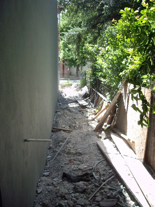 Around in back of the building (which they could not take right to the property line because of an easement that exists), there is going to be a long, narrow dog run for Max and Cassie. Here is
