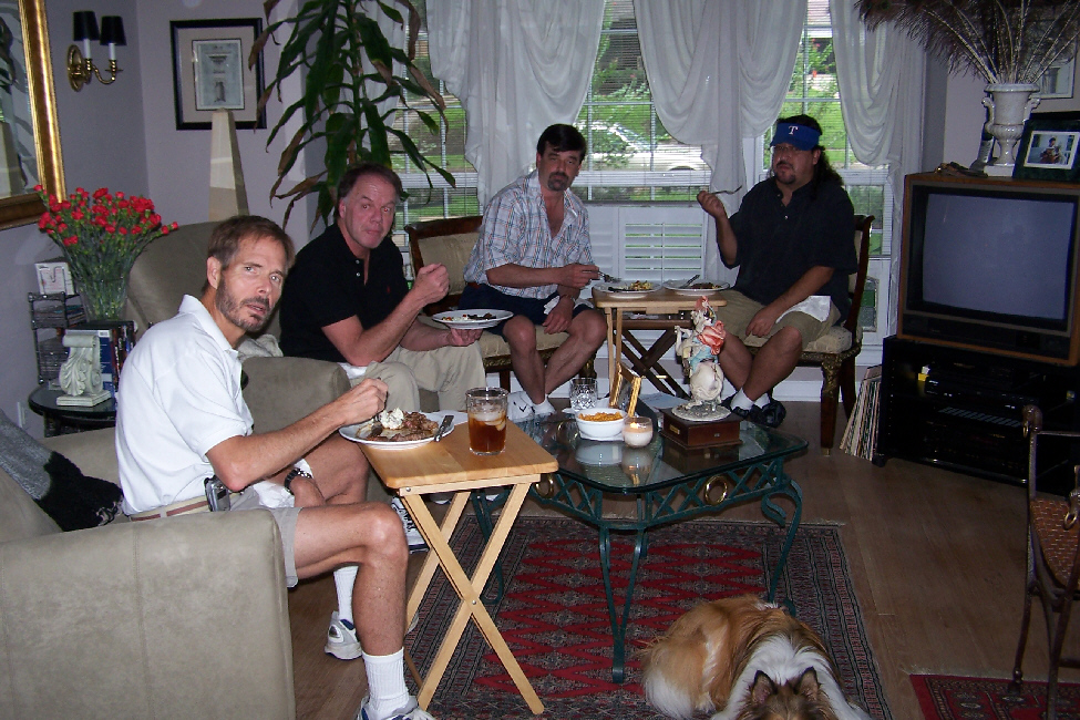 When Fred and I arrived, everyone else was already there. Ron and Jay had never been to Lou's house, and that was another reason Lou invited them; he was trying to in some small way pay them back for all the times that we've used their house for birthdays and the like.