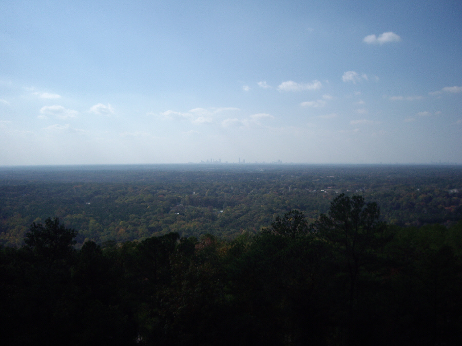 We went inside the building for a while; there are the typical coffee shop and souvenir sales, as well as some exhibits regarding the flora, fauna and geology of Stone Mountain. There was also a neat balcony/patio out the southern side of the building, but the views to the hazy south were unremarkable. We just bummed around for a bit before leaving the mountaintop and making our way down.